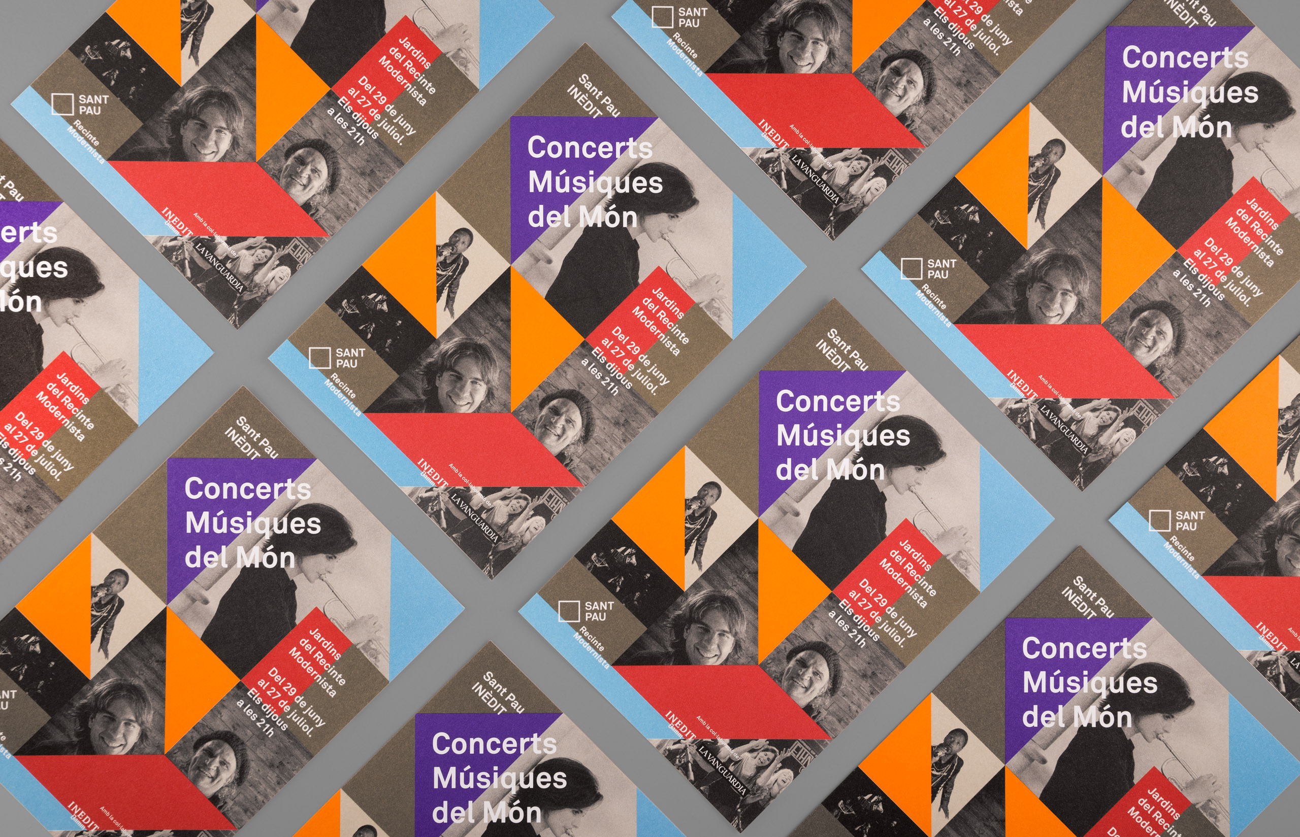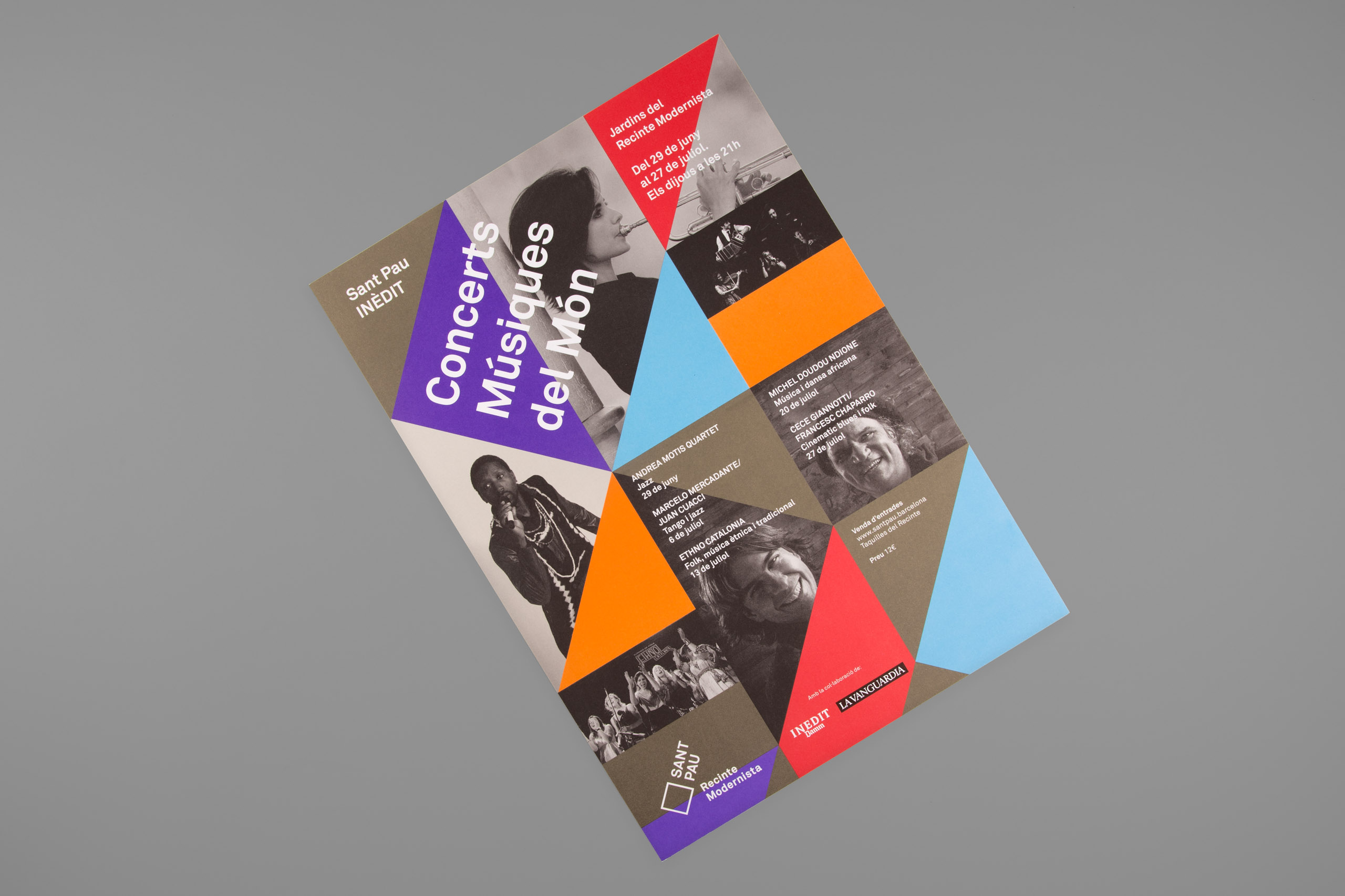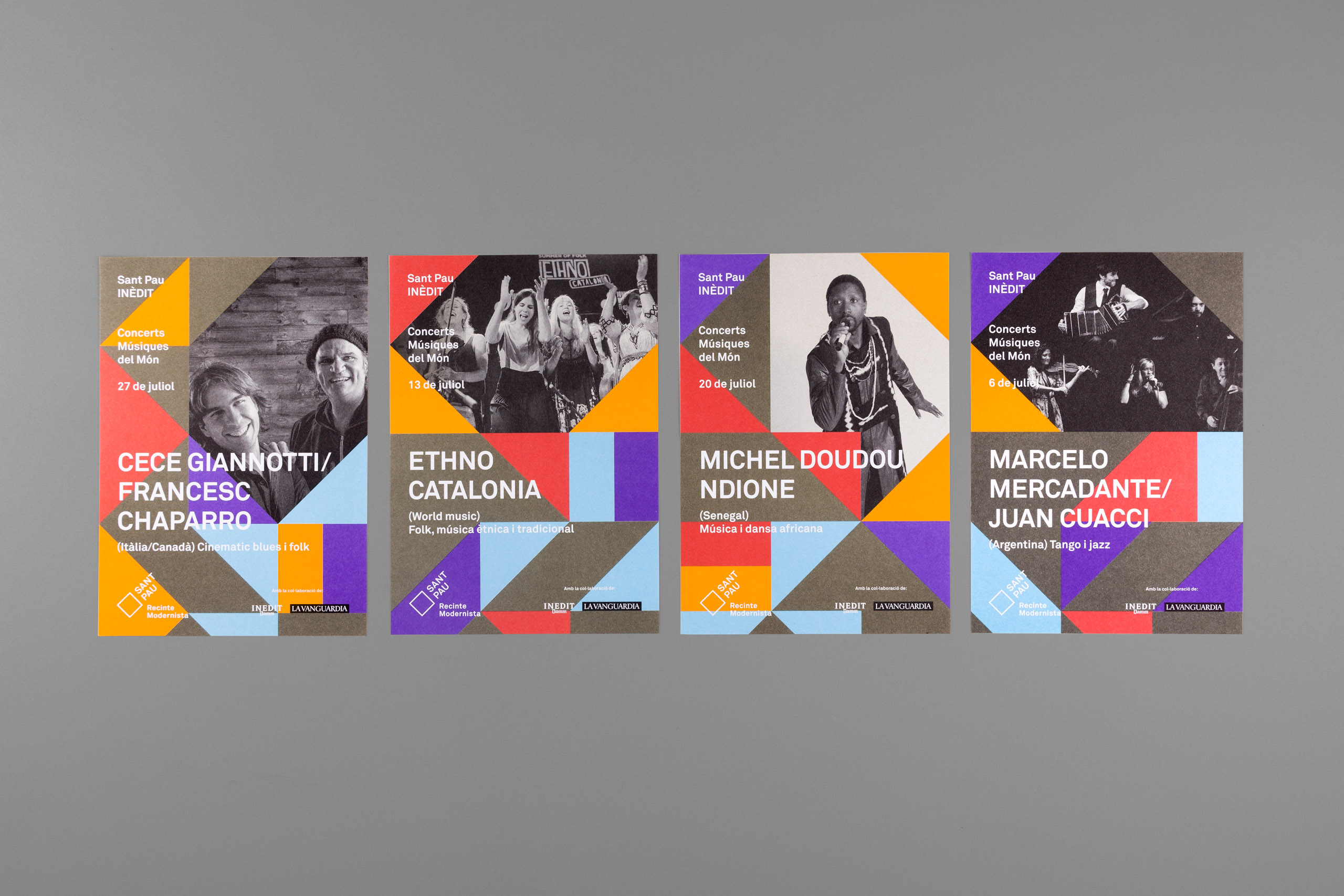 Graphic applications illustrate the character of these eclectic and exotic musical groups, reflecting the range of colours and geometric compositions.